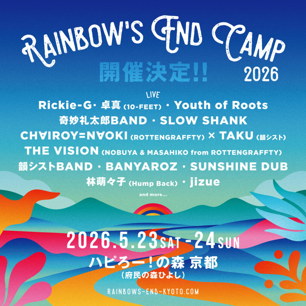 5月23日(土)-24日(日)に京都で開催される「RAINBOW’S END CAMP 2026」への出演が決定しました。